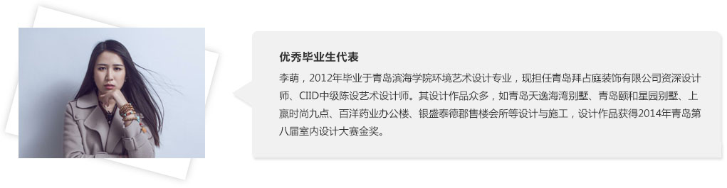 1.校外實習實訓基地:目前,環境藝術設計專業在專業建設的工作中不斷加強與企業之間的合作,現已與多家企業簽訂校外實習實訓協議,每年為專業學生提供學習、實習的機會。主要合作企業包括:青島博峰裝飾設計工程有限公司、青島樂豪斯裝飾産業集團、青島庭寶裝飾工程有限公司、青島愛可施裝飾工程有限公司、青島升茂裝飾工程有限公司、青島伊默立世裝飾工程有限公司、青島興盛家居裝飾有限公司等。