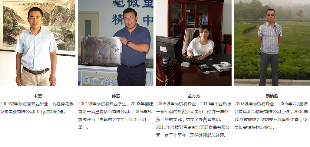 (3)建立校企合作跨境電商實訓中心:跨境電子商務實訓中心是商學院國際貿易專業與阿裡巴巴以及實體企業進行的三方聯營的實訓基地。國際經濟與貿易專業引入五家企業,由阿裡巴巴提供外貿服務平台,企業提供産品,我們學校提供國際貿易專業的學生,使用阿裡巴巴商務平台,讓學生實際操作外貿業務,熟悉了國際貿易的主要業務環節。從建成到現在已經接納了300多名學生的跨境電商的培訓。探索國貿跨境電商人才培養的有效路徑,這是商學院人才培養模式創新過程中具有重要意義的裡程碑。目前進駐的五家企業包括:青島美氟隆新材料有限公司 、山東沃德威輪胎有限公司、青島鴻潤發機械制造有限公司、青島艾海德電器有限公司、青島賽斯海拓商貿有限責任公司。